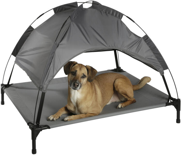 tépésálló Oxfort anyagból, bel és kültéri használatra a levehető tető árnyékot és védelmet biztosít a nyári közvetlen napsütéstől télen különösen hideg padlón nyújt védelmet könnyen és gyorsan össze- és szétszerelhető, plug-in rendszerű lábakon csúszásgátlóval
