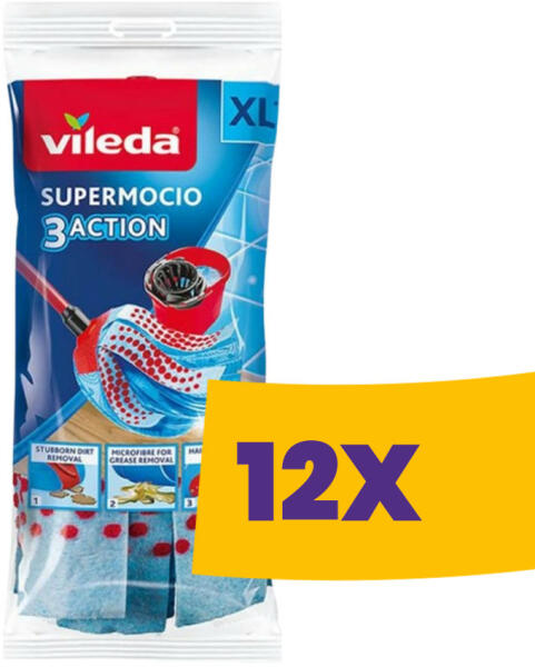 A Vileda SuperMocio felmosófej az erős szennyeződéseket is tökéletesen eltávolítja a megnövelt tisztító felületnek köszönhetően. A népszerű Vileda 3Action Velour gyorsfelmosó a hosszú évek alatt sokszor megújult, alkalmazkodva a fogyasztói igényekhez. A 2016-os újítás lehetővé teszi, hogy 25%-kal nagyobb felületet takaríts fel egy munkamenetben!A Vileda gyorsfelmosó