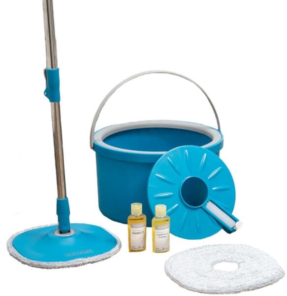 Tulajdonságok: 100% mikroszálas, 360°-ban forgó fej - állítható teleszkópos nyéllel. könnyed takarítás a nehezen hozzáférhető helyeken is! maximális nedvszívó képesség és foltmentes tisztítás. mosógépben mosható mop. Használati utasítás: engedje le a nyélen lévő zárat a pörgőmechanizmus feloldásához, úgy, hogy a markolat alját jobbra, az „Open felírat fel