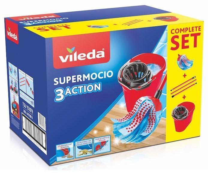 A Supermocio 3Action felmosó fej három eltérő színű és típusú szálat tartalmaz a még ragyogóbb tisztaságért: a fejen fent található piros részek az odaszáradt szennyeződések eltávolításában segítenek, a kék részek a mikroszálnak köszönhetően kiváló nedvszívóképességgel bírnak és a zsíros foltokat is felszedik, míg a 3D-s piros pontok a hajszálakat és az a