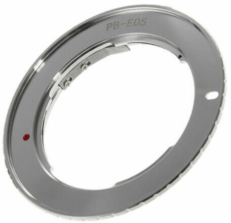 Fém Prakitca bajonett átalakító CHIP-el, amely segítségével Canon gépekre Praktica objektíveket helyezhetünk, és a CHIP-nek köszönhetően a Canon gépváz engedi a fénymérést. Nincs végtelen élességállítási lehetőség!