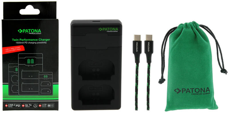 PATONA Premium Twin dupla, egymástól függetlenül működő, USB C tápellátású okos akkumulátortöltő Fujifilm NP-W235 fényképezőgép akkumulátorokhoz, Fuji FinePix XT4, X-T4 , stb. fényképezőgépekhez INGYENES szállítás 30.000. - Ft felett! A PATONA USB C töltője, elegáns, keskeny kialakításának és csekély súlyának köszönhetően ideális társ minden utazáshoz és