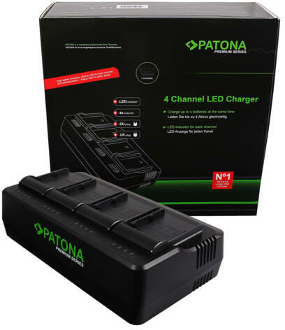 PATONA Premium 4-fold Töltő a következő modellhez:Canon BP-A30 BP-A60 BP-A65 BP-A90 EOS C200 C200B C300 Mark II XF705Örömmel mutatjuk be Önnek prémium termékcsaládunk egy újabb termékét. A 4 csatornás Töltőnkkel egyszerre akár négy 8,4V / 16,8 V-os Li-ion akkumulátorokkal is tölthet. Egy intelligens vezérlőegység (MCU) szabályozza a feszültségelosztást a 4 csatornára. A