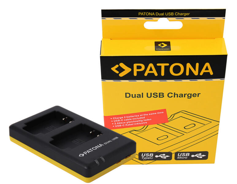 PATONA dupla USB C akkumulátortöltő Canon NB-12L/13L fényképezőgép akkumulátorokhoz, Canon PowerShot SX620 SX720 SX730 SX740, G1 X Mark II, G1 X Mark III, G5 X, G5 X Mark II, G7 X, G7 X Mark II, G9, stb. fényképezőgépekhez INGYENES szállítás 30.000. - Ft felett! Kis méret, könnyű súly és rugalmas tápelláts jellemzi a PATONA fényképezőgép akkumulátor töltőjét. A vékon