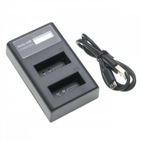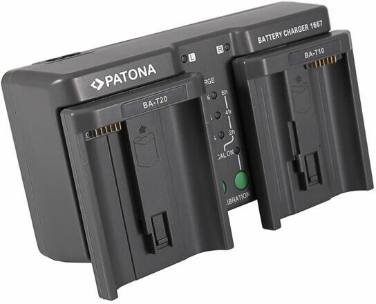 A terméklap fordítás alatt áll. Kérdés esetén kérlek keresd ügyfélszolgálatunk. PATONA Dual Charger f. Nikon EN-EL18 EN-EL4 LP-E4 BA-T10 BA-T20 MH-26 The PATONA Dual Charger has 2 charging plates included, to charge different batteries. Two batteries can be inserted at the same time. Compatible to following batteries: Nikon EN-EL18, ENEL18, EN-EL4, EN-EL4A, ENEL4, ENEL4A, Canon LP-E4, L