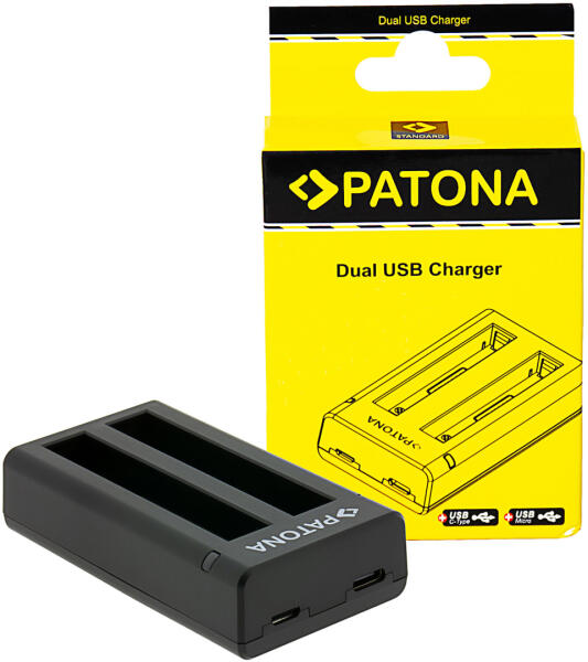PATONA DUAL akkumulátor töltő (dupla) (for INSTA360 X4) A PATONA Insta360 X4 USB Dual Charger rendkívül kompakt kialakításának köszönhetően utazási és professzionális felhasználók számára egyaránt ideális. Praktikus és megbízható társ minden digitális fotózáshoz. Lehetőség van 2 akkumulátor egyidejű töltésére. A töltő bármely szabványos USB-porton keresztül t