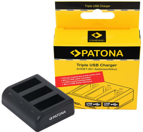 A terméklap fordítás alatt áll. Kérdés esetén kérlek keresd ügyfélszolgálatunk. PATONA Tripple töltő GoPro Hero 9 AHDBT901 ADBAT001 Micro USB kábellel együtt Műszaki adatok: Bemenet: USB-C: DC 5V / 2,1A / Micro-USB: DC 5V / 2,1A Kimenet: DC 4.4V / 0,7A (CH1 / CH2 / CH3) Méretek: 7 x 5,5 x 2,3 cm Csatlakozók: Micro USB (input), USB-C (input), 3 töltőtálcák (output) .