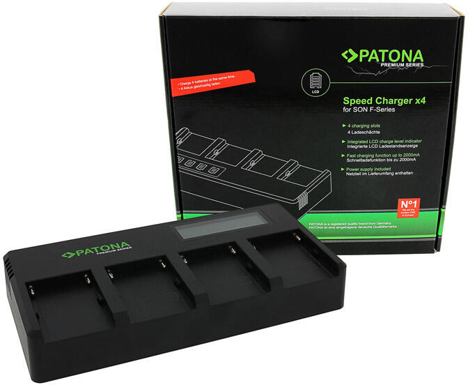 A 4-szeres gyorstöltővel egyszerre akár négy darab 8,4 V-os Li-Ion akkumulátort is tölthet. A PATONA Premium 4 csatornás töltő beépített túlfeszültségvédelemmel rendelkezik. Technikai adatok: Bemenet: 12-20V / 3,5A min. Kimenet: 8,4V Kimenet: x2 / 1000mA x4 ± 200 mA Gyorstöltési funkció 2000mA-ig LCD töltöttségi szintjelző minden csatornához Tömeg töltő: 244g Méretek: M