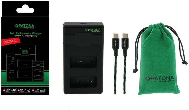 PATONA Premium Twin Performance PD akkumulátor töltő (for Canon LP-E6) A PATONA Premium Twin Performance PD töltővel Canon LP-E6 -hoz két akkumulátor tölthető gyorsan, egyszerre és egymástól függetlenül. A töltendő akkumulátorok kapacitásbeli különbségei nem relevánsak. Lenyűgözi innovatív technológiájával, stílusos kialakításával és intelligens méretével. 62 gra