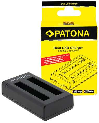 PATONA kettős töltő f. Insta360 X3 CINAQBT/A incl. Micro-USB kábel A PATONA Insta360 X3 töltő ideális az utazók vagy az üzleti felhasználók számára a kompakt hordozható kialakítás miatt. Praktikus és megbízható társ minden digitális fényképezéshez. Egyszerre 2 akkumulátor töltésére van lehetőség. A töltő a mellékelt micro USB kábellel minden szabványos USB porton