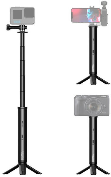 Ulanzi UURig A0010 TP04 kamera PowerBank Fotó/ Akciókamera/ Kamera Selfie-bot 5000mAh akkumulátor - folyamatosan töltő markolat + MT-15 mini-tripod-állvány (330- 1200mm) UURig egybeépített Akciókamera & Kamera (DSLR/ MILC) 5 szekciós teleszkópos összecsukható Selfie-bot markolat és állvány és folyamatosan töltő adapter a beépített Lithium 5000 mAh akkumulátornak köszön