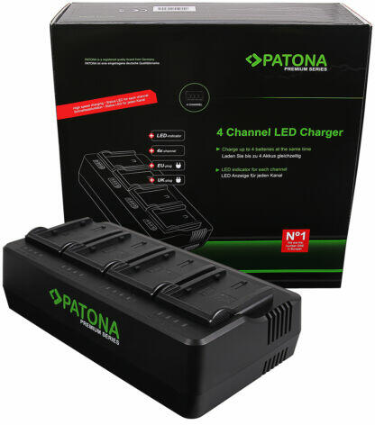 A terméklap fordítás alatt áll. Kérdés esetén kérlek keresd ügyfélszolgálatunk. PATONA Premium 4-fold Charger for Panasonic VW-VBD29 VW-VBD58 VW-VBD78 AJ-PX298MC HDC-MDH2GK AJ-HPX270 We are pleased to present you another product of our premium product range. With our 4-channel charger, you can charge up to four 8.4V / 16.8 V Li-ion batteries simultaneously. An intelligent control unit (