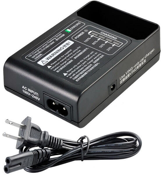 A Godox Ving 860-as vakuk akkumulátorához való töltő, C típusú hálózati csatlakozóval.