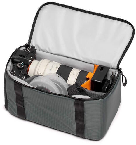 Fényképezőgép/laptop kapacitás - 1-2 tükör nélküli vagy DSLR fényképezőgép 7-9 objektívvel, beleértve egy legfeljebb 42 cm (16,5 hüvelyk) hosszúságú fényképezőgép/objektív kombinációt, valamint egy legfeljebb 40 cm (16 hüvelyk) hosszúságú laptopot. Illeszkedik a DJI Mavic és más kompakt drónokhoz is. Illeszkedik olyan objektívekhez, mint a Sony 200-600mm, Canon 20