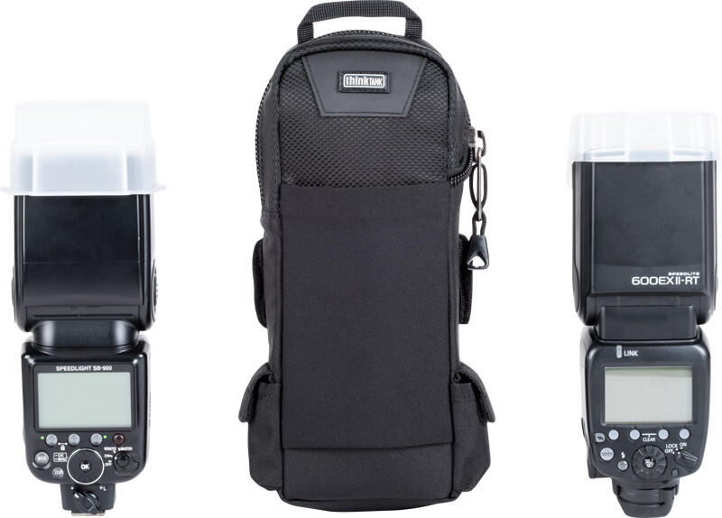Think Tank Flash Mob V3.0 DSLR vaku tartó tok A Think Tank Flash Mob V3.0 tökéletes választás DSLR vakuk számára, különösen azoknak, akik diffúzorral szerelve használják ezeket a kiegészítőket. Ez a strapabíró és praktikus tok ideális megoldást nyújt a vakuk kényelmes és biztonságos szállítására, legyen szó profi fotósokról vagy amatőrökről. Az extra tárolózseb