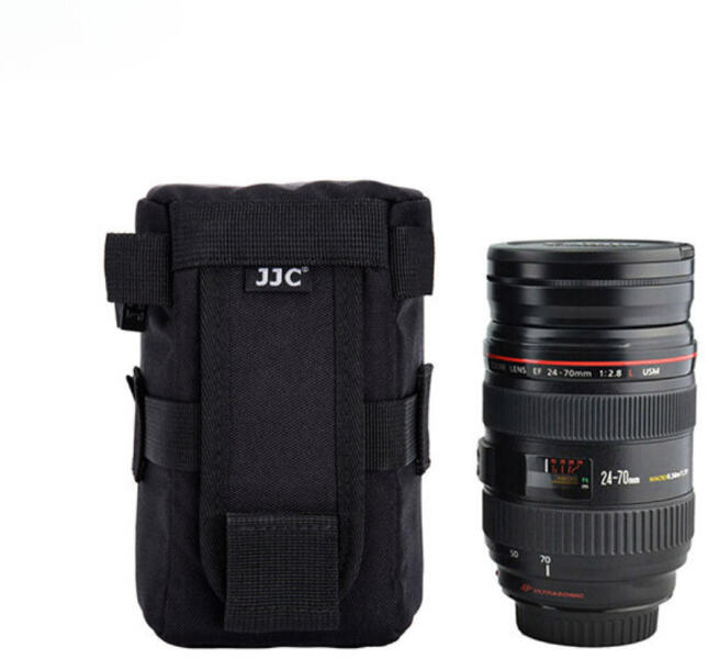 JJC Deluxe Objektív Tartó M - Lencsevédő táska A JJC Deluxe objektívtáska egy tipikus tükörreflexes objektív hordozására szolgál. Ez a tok strapabíró poliészter konstrukcióval rendelkezik, puha belsővel. Nagyszerű védelmet és ütéscsillapítást biztosít az objektív számára. A tasakot egy dupla érintős övhurokkal, két hevederes szemhurokkal vagy két D-gyűrűvel lehe