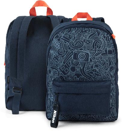 Külső: 900D vízlepergető nejlon Vidám, rajzos minta Rugalmas belső hálós zseb a Nikon COOLPIX fényképezőgépnek 15 literes fő rekesz. Elöl külső cipzáras zseb Külső méretek: H 385 x M 270 x Sz 140 mm 285 g