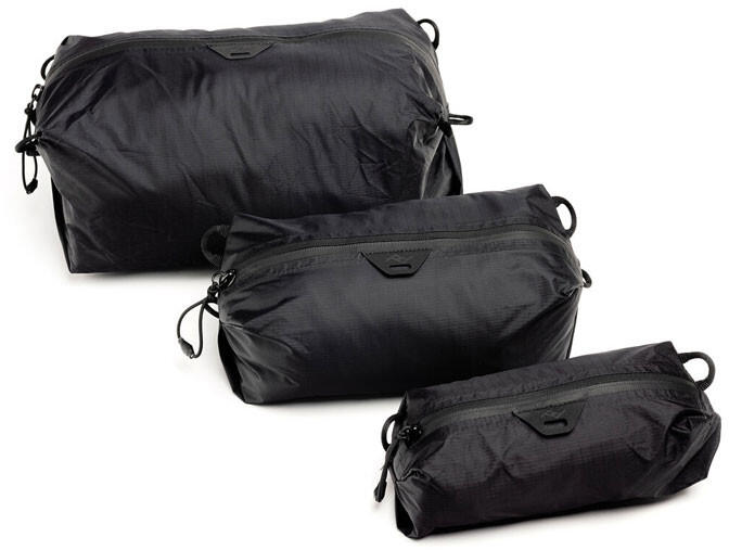 Csomagolja és rendszerezze felszerelését egy nagyobb táskán belül a Peak Design fekete Ultrakönnyű csomagolókocka készletével. Ezek a könnyű csomagolókockák minimalista kialakításúak, tartós, időjárásálló cipzáras záródással. A hordozóhurok egy opcionális hevedert rögzít, hogy a kockákat önálló hevederes táskákká alakítsák át. A heveder-átvezetők összek