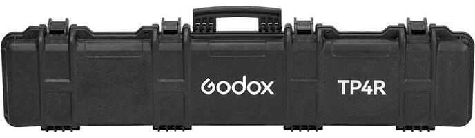 Merev műanyag tároló tok Biztonságos tok reteszek Összecsukható merev műanyag fogantyú A CB77 hordtáska a KNOWLED TP4R 4-fényes készlethez a Godox-tól egy merev műanyag tárolási és szállítási megoldás a KNOWLED TP sorozatú LED csöves lámpákhoz. Ez a védőtáska biztonságosan tárolja a négy KNOWLED TP4R lámpát, valamint a TP4R-K4 lámpakészlethez tartozó hálózati a