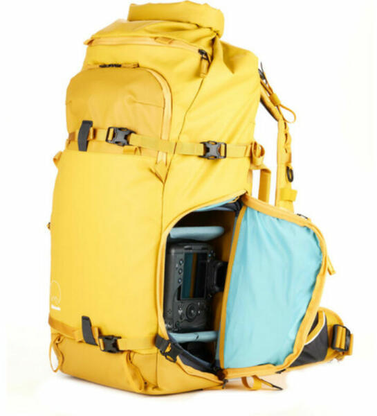A Shimoda Designs Action X50 V2 Starter Kit egy sárga Action X50 V2 hátizsákot és egy kék, közepes méretű DSLR core unit-ot tartalmaz. A hátizsák számos személyes tárgyat és kiegészítőt el tud nyelni, beleértve a ruházatot és a túrafelszerelést is. A közepes DSLR core unit-ba beleférnek a markolat nélküli MILC vagy DSLR-testek, olyan magasak, mint a Canon EOS-1DX vagy a N