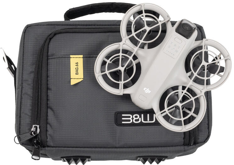 B&W OUTDOOR CASES TEX-66 Neo (for DJI NEO) Drone táska párnázott elválasztó rendszerrel és vállpánttal. Jellemzők: vízlepergető puha táska poliészterből könnyen nyitható 2 irányú cipzár párnázott elválasztó rendszer - előre konfigurálva a DJI Neo Fly More Combo-hoz két hálós zseb egy elülső rekesz 2000 / PP. 66 fekete-fehér tokba illeszkedik Méretek Belső mére