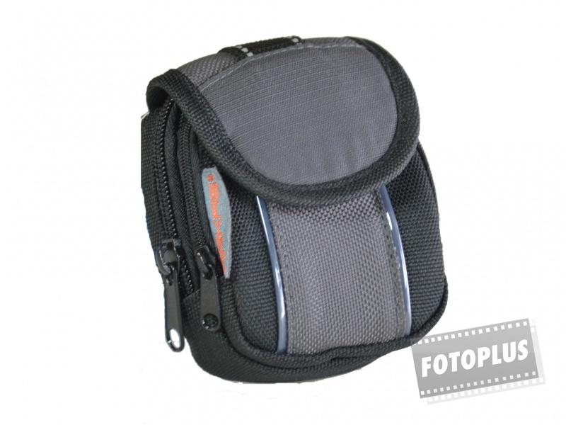 Puha fényképezőgép tok, Két cippzáras rekesszel, Karabínerrel, Oldalán márka címke, Kompatibilis: Canon Powershot A480