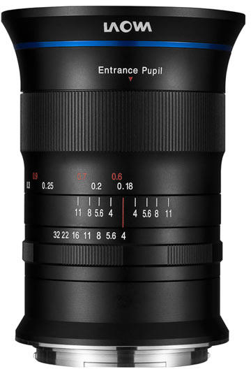 Gyújtótávolság: 17mm Látószög: 113° Rekesz tartomány: f/4.0- f32 Súly: 829g A Laowa 17mm f/4 GFX Zero-D objektív a világ első olyan objektíve, ami ekvivalens 13,5cm-es nagylátószöget kínál a Fujifilm GFX középformátumú fényképezőgépeire. Az objektív nevében a Zero D azt jelenti, hogy közel torzítás mentes képet ad. Két darab aszférikus lencse tagot és 3db alacso