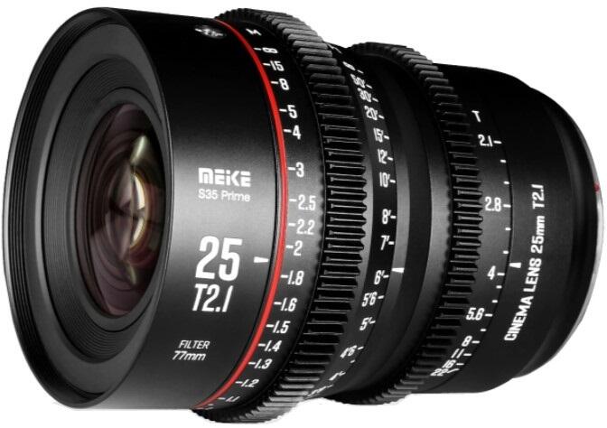 Meike 25mm T2.2 manuális fókuszú Cine objektív - Canon RF bajonettel. Manuális fókuszú, extra nagy látószögű filmes objektív teljesen fémből készült házban. Ez a nagy rekesznyílású, alacsony torzítású cine objektív egy kreatív eszköz kiváló minőségű, nagyfelbontású felvételek készítéséhez. Sima körkörös bokeh-vel és alacsony fókuszlégzéssel rendelkezik.