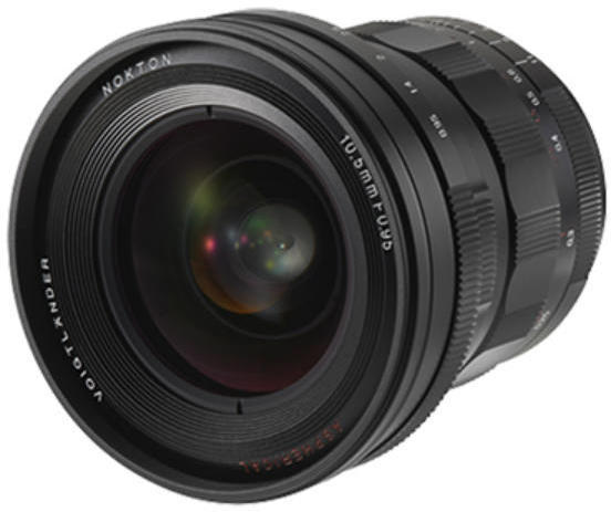 A 10,5 milliméteres fókusztávolságú, 93° látószögű, aszférikus objektív még teljes rekesznyílásnál is tű éles képet ad. Különösen a videósok és filmkészítők számára érdekes a lencse szelektív rekeszvezérlési rendszere, amely folyamatos, zajmentes rekeszelést tesz lehetővé, így a mélységélesség gyorsan és egyszerűen változtatható. Az egészen közeli, 15