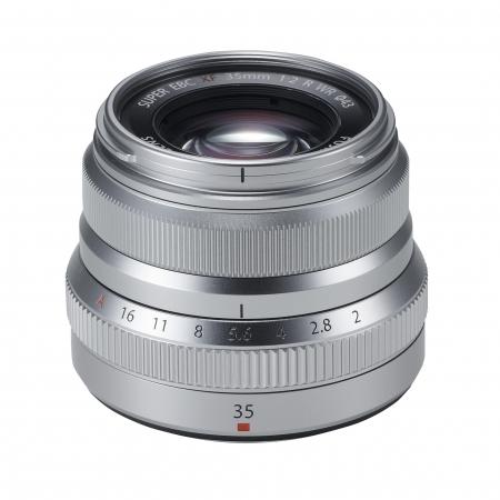 A "FUJINON XF35mmF2 R WR" 53mm egyenértékű gyújtótávolságot kínál * ami hasonló az emberi szem látószögéhez, maximális rekeszértéke F2.0. Éles képek és gazdag bokeh jellemzik. Az optikai konstrukció 9 lencsetagból áll 6 csoportban (köztük két aszférikus lencsetag) ahol a magas képminőség és a kompakt méret tökéletes egyensúlyban van. Az objektív a sorozat legkis