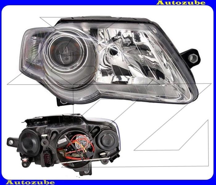 VW PASSAT B6 2005.03-2010.10 /3C/ Fényszóró jobb króm házas (H7/H7) motorral "Hella-típusú"DEPO Utángyártott alkatrész