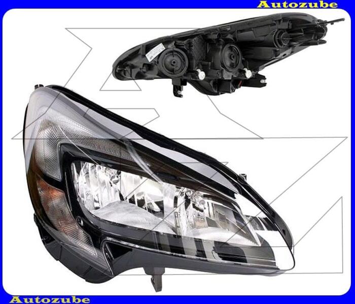 OPEL CORSA E 2014.09-2019.10 /X15/ Fényszóró jobb (H7/H7/P21/5W) fekete házas, nappali fénnyel, motorral HELLA Eredeti alkatrész