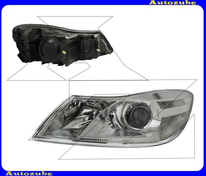 SKODA OCTAVIA 2 2009.10-2013.01 /1Z/ Fényszóró bal króm házas (H7/H1) motorral "OCTAVIA logó nélkül"DEPO Utángyártott alkatrész