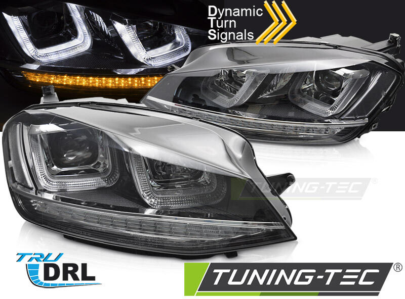 Termék: Tuning-Tec Első Fényszóró Ez a fényszóró Európai engedéllyel (E jellel) rendelkezik! A csomagolás tartalma: 1 pár első fényszóró (1db jobb és 1db bal) Az ízzó nem kötelező tartozéka a lámpának!! Ízzó típusa: Parkolólámpa: LED U-típusDRL: U-típusú LEDIrányjelző: LED DinamikusTompított fényszóró: H7 nem tartozékTávolsági: H1 nem tartalmazzaSzabályoz