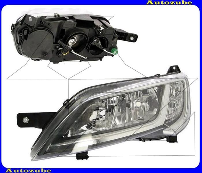 PEUGEOT BOXER 3 2014.06-2023.12 Fényszóró bal (2xH7/W21/5W) króm keretes, nappali fénnyel, motorralTYC Utángyártott alkatrész