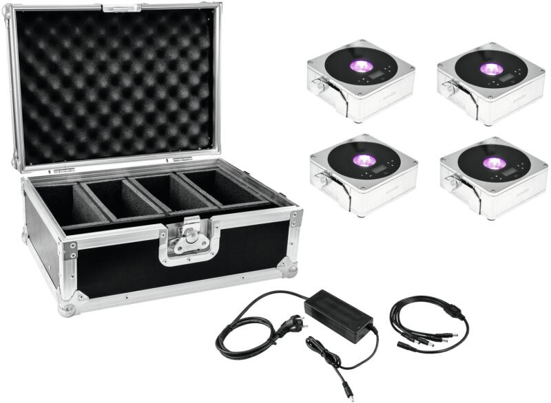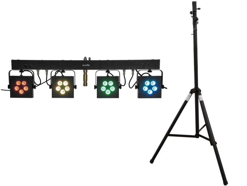 7x3W Tricolor LED-Es 4-PAR fényeffekt szett - 4 PAR lámpa mindegyike rendelkezik 7 nagy fényerőjű 3W LED-el - T-rúd, beépített vezérlővel és tápegységgel (hordtáska mellékelve) - Tripod állvány hordtáskával - Működési módok: Auto, Hangvezérlés, DMX, Lábkapcsoló - 8 belső program, hangvezérléssel és stoboszkóppal - DMX: 16CH, 12CH, 7CH, 3CH és 1CH módok - Lencsesz