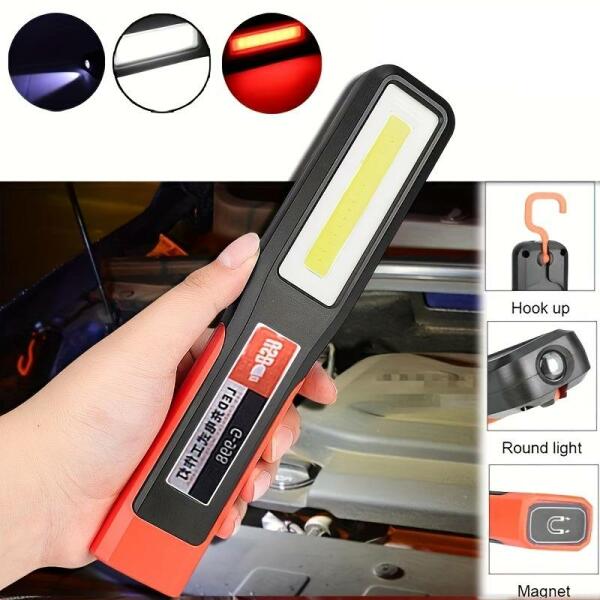 Újratölthető COB Ledes több funkciós munkalámpa. A COB munkalámpa egy olyan lámpatípus, amely COB (Chip-on-Board) LED világítástechnológiát használ az erős és egyenletes fény biztosítása érdekében. A COB egy olyan módszer, amely a LED-chipeket közvetlenül egyetlen hordozón rendezi el, ami nagy sűrűségű világító pontokat hoz létre, és intenzív és egyenletes megv