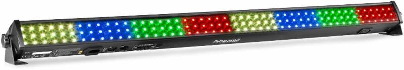 Műszaki adatok: - 144x SMD RGB LED -ek - 3, 4, 7, 24 vagy 28 DMX csatorna - 8 állítható szakasz - DMX és önálló mód - Master/slave funkció - Automatikus mód állítható sebességgel - IR távirányító - DMX in/output in 3-pin XLR-en keresztül - IEC bemenet/kimenet - Vezérlőpult LED kijelzővel - Üzemmódok: Automatikus programok, DMX, Kézi, Master/Slave - Hűtés: Konvekció - T