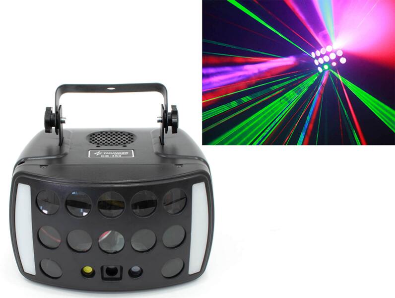 Thunder DB-480 Derby 4 az 1-ben fényeffekt +Stroboszkóp, +Lézer, +Háttérderítő (50W) Hivatalos magyarországi forgalmazótól. Termékleírás: A Thunder DB-480 egy nagy fényerővel rendelkező DMX vezérléses, sok funkcióval ellátott fényeffekt. Derby effektje mellett stroboszkóppal, lézerrel és két oldalán egy dizájnos LED csíkkal is rendelkezik. A ledek számos előnyét ki l
