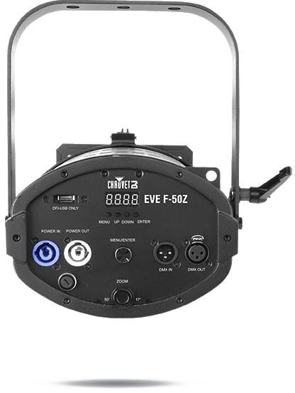 Fresnel, 50W melegfehér LED, 3500K, CRI 92, zoom, D-Fi USB, DMX - DMX csatornák: 1 vagy 3 - DMX csatlakozás: 3 pólusú XLR - Fényforrás: 1 LED (melegfehér) 50 W (1.3 A), 50 000 óra várható élettartam - Színhőmérséklet: 3500 K - CRI: 92 - Fényterítési szög: szűk – 17 fok, széles – 50 fok - Fényerősség: 4780 lux @ 2m, 17 foknál; 998 lux @ 2m, 50 foknál - Továbbfűzhet