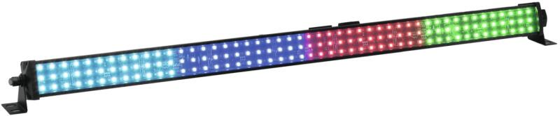 Műszaki adatok: - Fényforrások: 9 x 1W LED - Piros, zöld, kék, borostyán, fehér, meleg fehér, lila, sárga, rózsaszín - Hang / Automata / DMX vezérelhető - Távirányító - Villanási sebesség másodpercenként: 1 - 20 Hz - Vetítési szög: 120° - DMX csatornák: 7 - DMX csatlakozó: 3 tűs XLR - Zene ritmusára váltogatja a színeket és a fénycsővák irányát - Nagyobb termek