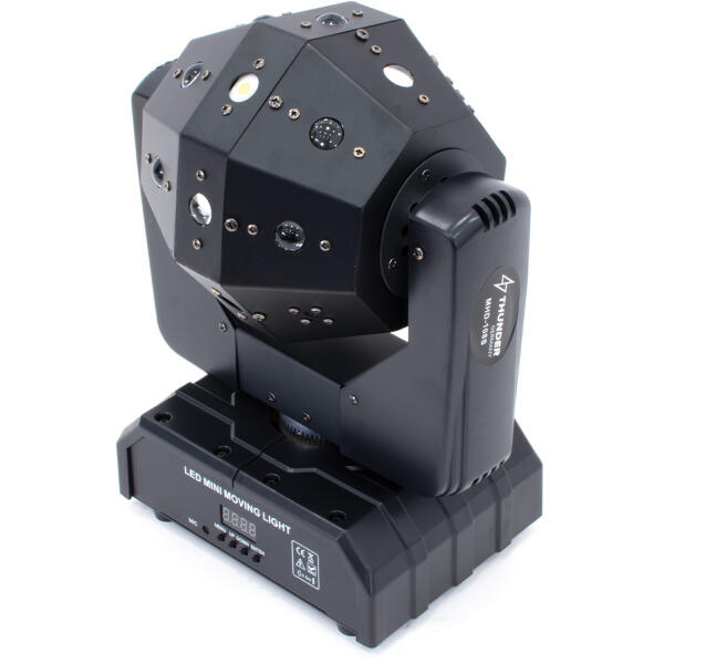 Műszaki adatok: - 16x3W RGBW + 4x15W STROB Led fényforrás - (4 x Piros) + (4 x Zöld) + (4xKék) + (4xFehér) LED + 4x15W Fehér Stroboszkóp - Piros lézer: 2 x 100 mW - Zöld lézer: 2 x 50 mW - Sound / Auto / DMX / Master-Slave módokban vezérelhető - Szabályozható fényerő és szín, stroboszkóp - Aktív hűtés - Gyors és halk mozgás - Tápellátás: AC110-240V 50/60Hz - Méret: 26
