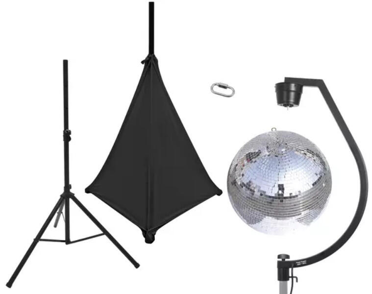 Tükörgolyó állványtartóval motorral, állvány vitorlával és hangszóró állvánnyal EUROLITE tükörgömb 50cm Biztonsági tükörgolyó második füllel Tükörgolyó erős műanyag maggal Magas stabilitás a folytonos tengelyen keresztül Zökkenőmentes kötés Valódi üveglapok Kiegészítő biztonsági fül a biztonsági lánchoz Alkalmazási területeken, mint például: klubok/t