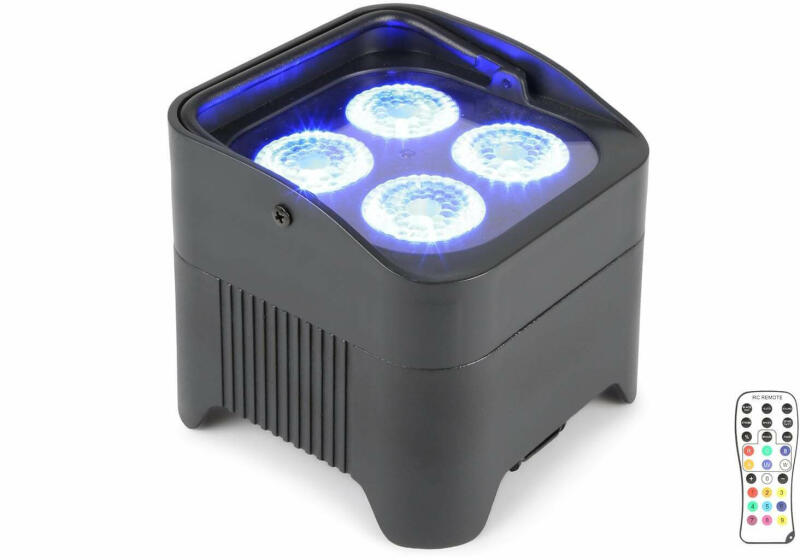 Műszaki adatok: - 4x 10W 6-in-1 LED-ek - RGBAW-UV (Piros, Zöld, Kék, Borostyán, Fehér, UV) - A 6 alapszín segítségével rengeteg más színt képes kikeverni - Minimális fogyasztás, mégis nagy fényerő - 1 töltéssel akár 9 óra működés - Akár 3 óra alatt feltölthető - Minimális hőkibocsátás - IP20 védettség - DMX csatlakozás: RJ45 - Tartozék 1db RJ45 kábel átalakít