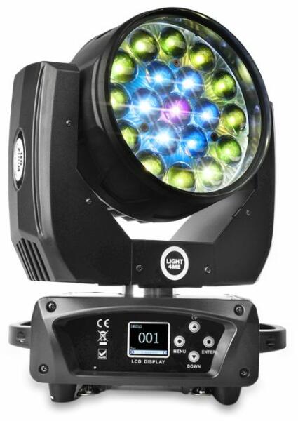 A Light4Me Zoom Wash 19x15W egy kiváló mozgófejes lámpa, amely modern dizájnjával, nagy diódateljesítményével, precíz optikájával tűnik ki. A megvilágító megfelel a szigorú színpadtechnikai követelményeknek, miközben egyszerű kezelést kínál. A mozdulatok nagy pontosságának és gördülékenységének, lenyűgöző színeffektusoknak, egyenletes fényerő-szabályozásna