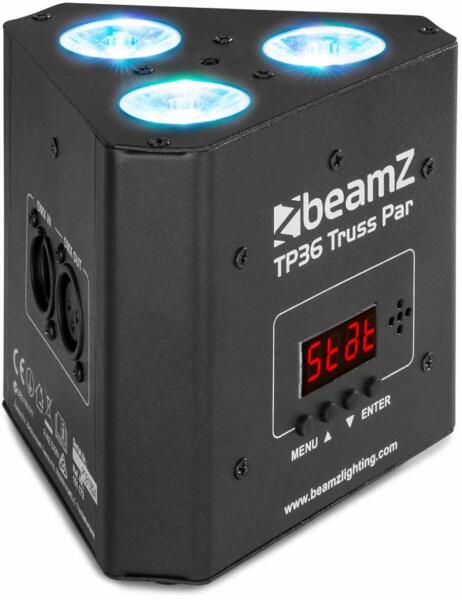 Műszaki adatok: - 3x4W 4 az 1-ben LED - RGB-UV színkeverés - 3, 4-1, 4 vagy 8 DMX csatorna - DMX és Stand-alone mód - 0-100% elektronikus fényerő-szabályozó - A kompakt kialakítás könnyen elfér a TRUSS belsejében - Master/Slave funkció - IR távirányító - DMX be/kimenet 3 tűs csatlakozón keresztül - Előre programozott műsorok - Automata üzemmód állítható sebességgel -