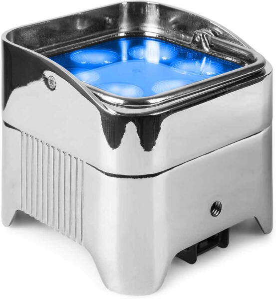 Műszaki adatok: - 6x 12W-os 6 az 1-ben RGBW-UV LED - Beépített vezeték nélküli DMX vevő - Integrált összecsukható láb - Akár 9 óra üzemidő - Gyors töltési idő, mindössze 3 óra - DMX és önálló mód - 6 vagy 10 DMX csatorna - IR távirányító - Automata üzemmód állítható sebességgel - Master/slave szinkronizálás - 0-100% elektronikus fényerő-szabályozó - DMX be/