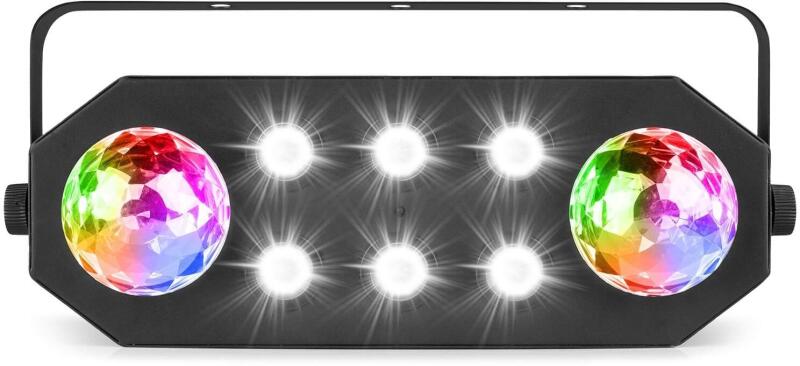 Műszaki adatok: - 2 az 1-ben fényeffekt dupla Moonflower effekttel és nagy teljesítményű LED-ekkel - Dupla Moonflower effekt 2x 12W RGBAWP LED-ekkel - LED fény 6x 2W-os fehér LED-ekkel - Mindkét effekt külön-külön vezérelhető - IR távirányító - Automatikus vagy hang üzemmód - 4 előre programozott műsor - Tömeg: 1,15 kg - Méret: 80 x 350 x 120 mm - Felvillanási sebesség m