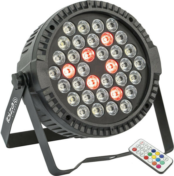 LED PAR lámpa, 36 x 1 W, RGBW, auto, DMX, master-slave, távirányító, extra vékony kialakítás