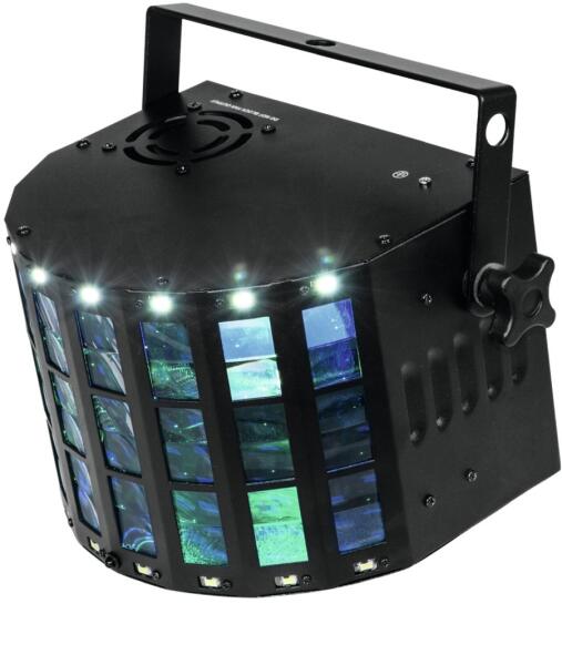 Műszaki adatok: - 100W nagy intenzitású fehér LED - Vezérlési mód: DMX 512, Master/Slave, Auto, Hang aktív - Gobo Wheel: 7x fix gobo + nyitott - Gobo shake és szivárvány funkció - Színkerék: 7 szín + fehér - Forgatható 6 fazettás prizma - 0-100% elektronikus dimmer - 16 bites finom Pan/Tilt vezérlés - Vezérlőpanel LED kijelzővel - DMX be-/kimenet 3 pólusú XLR-en keresztül